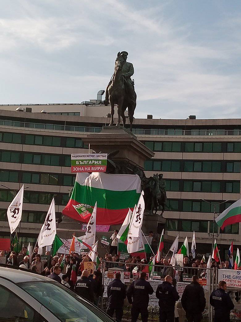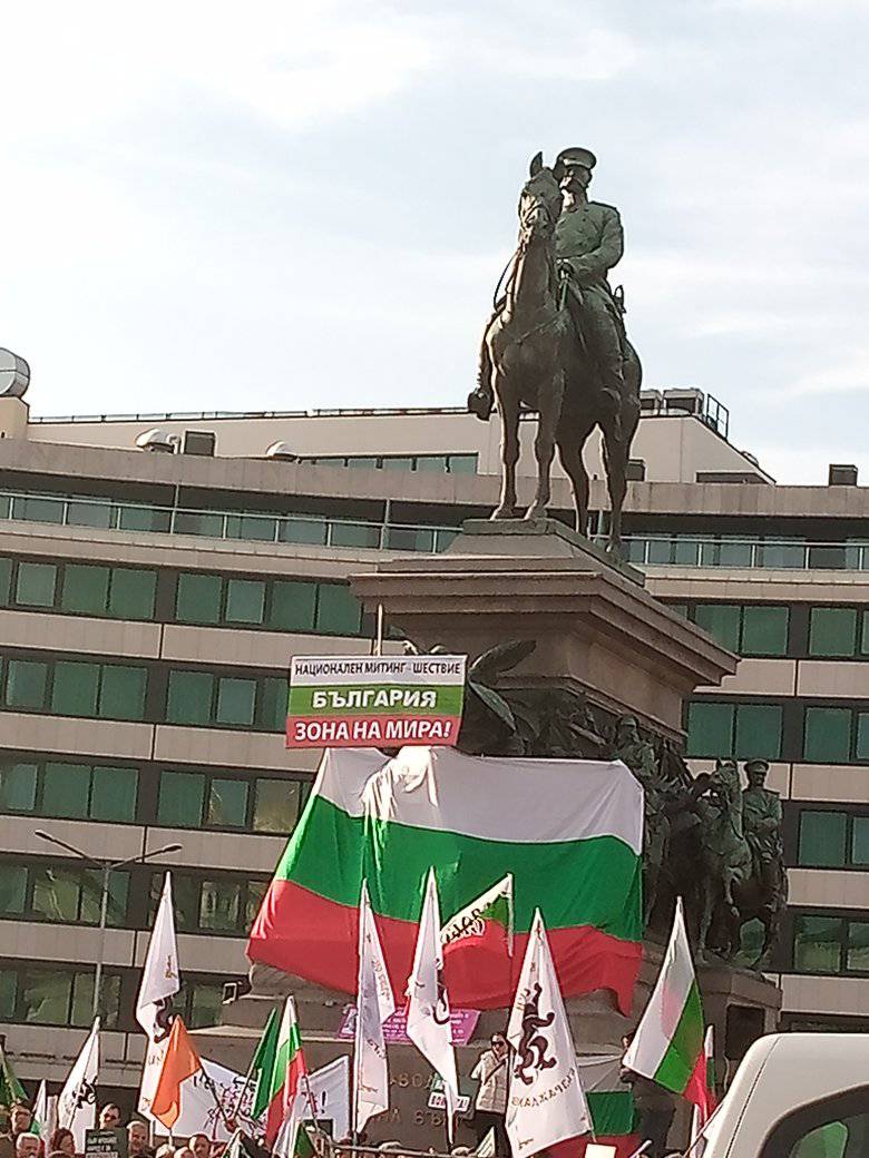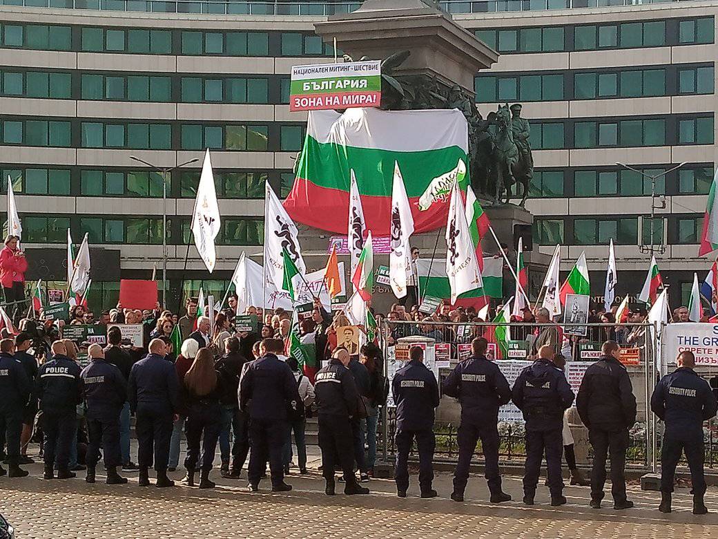 Според протестиращите възрожденци, ако евентуално България помогне на Украйна с оръжия, това би означавало вмешателство във войната.