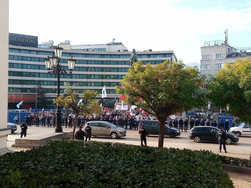 Стотици симпатизанти на "Възраждане" се събраха на протест пред парламента с с български знамена и плакати "НАТО вън!". Повод за гнева на хората на Костадин Костадинов е въоръжаването на Украйна, което днес ще се гласува в Народното събрание.