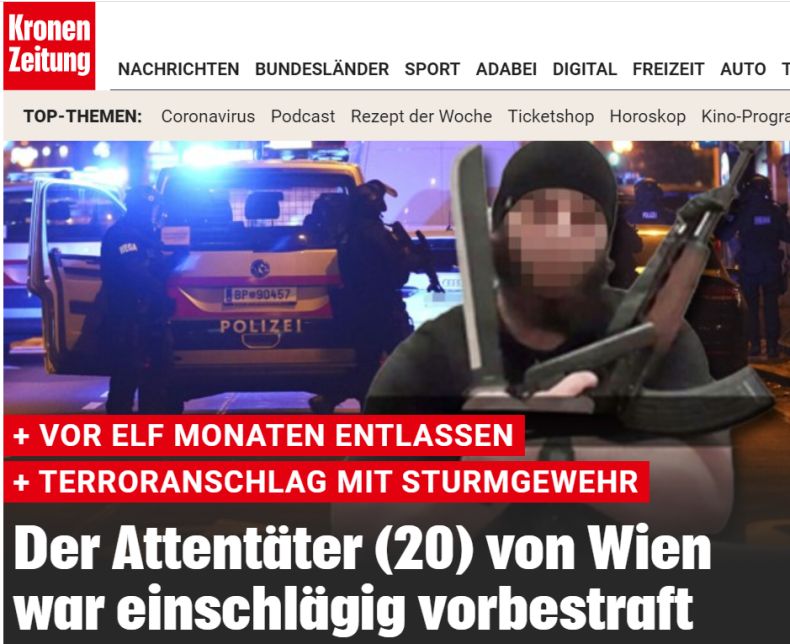 Един от терористите окървавил Виена е 30-годишен бежанец, съобщава изданието "Крона", като се позовава на свои източници. Според данни въпросният мъж, който позира с тежко въоръжение на снимките е отдавна в Австрия, а малко преди кръвопролитието той е дал клетва вярност на новия ръководител на "Ислямска държава" Абу Ибрахим ал-Хашими ал-Курайши.