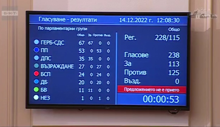 Беше поискано прегласуване. И при него 113 бяха за, 125 бяха против и отново нямаше въздържали се.
