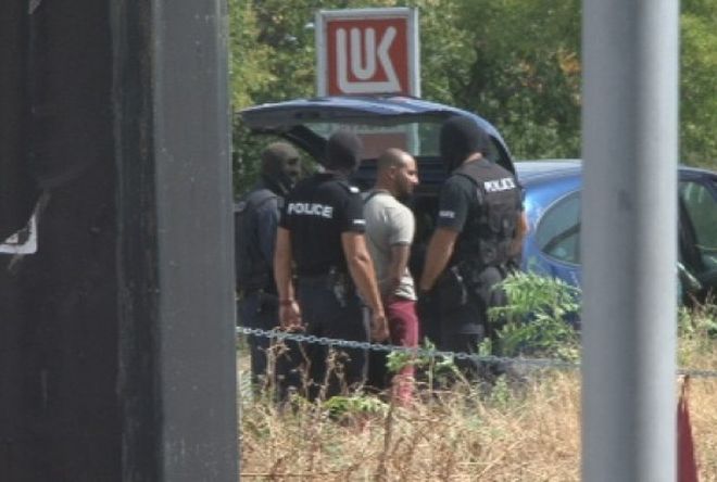 Двамата арестувани бяха изправени пред автомобила им, докато полицаи извършваха претърсването, предава Би Ти Ви.