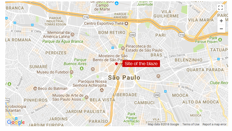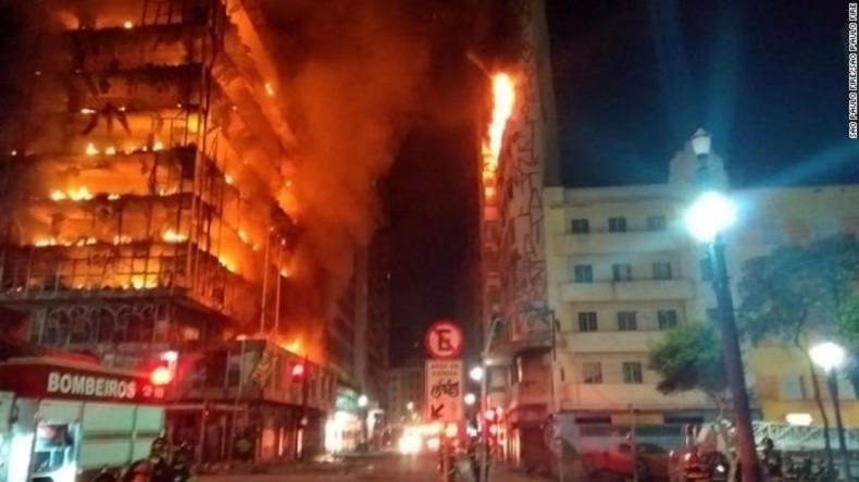 Огнен ад в бразилския град Сао Пауло! Горящ небостъргач рухна след огромен пожар.