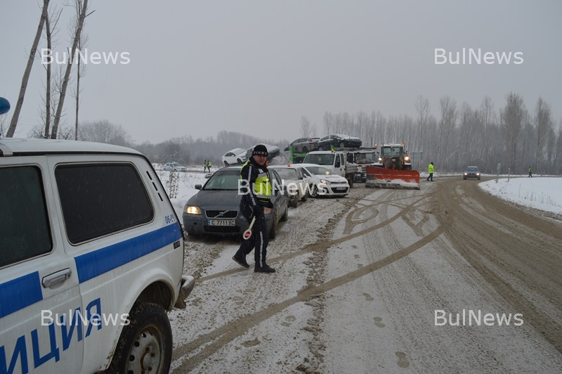 Не се знае докога ще продължи акцията за изтеглянето на автовоза. Съветваме шофьорите да преминават през и без това проблемния участък с повишено внимание.