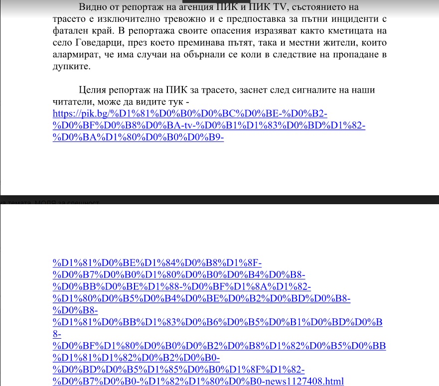 ПИК изпрати въпроси до АПИ дали се предвижда цялостен ремонт на трасето, тъй като временното запълване на дупките едва ли ще реши проблема. Отговор до този момент в редакцията ни не е получен.