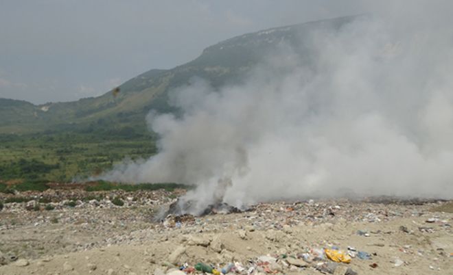 Засегната е доста голяма площ от Депото за отпадъци, на място има противопожарни екипи. Няма опасност за населението, огънят е овладян.