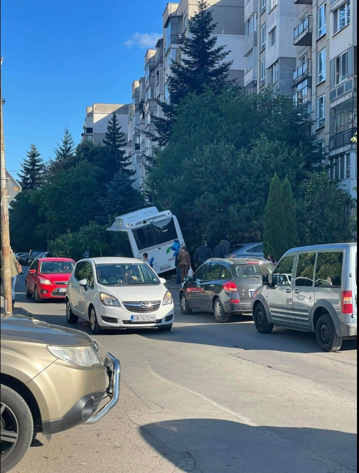 Автобус на градския транспорт в София блъсна дърво до спирка до блок 205 в квартал "Младост".