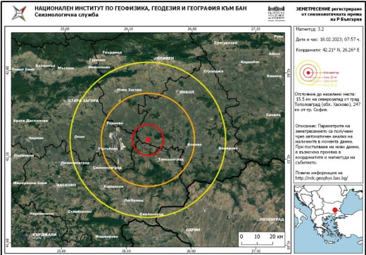 Земният трус е регистриран в 7:75 часа в района на Тополовград, сочи справка в сайта на БАН и Европейския сеизмологичен център.
