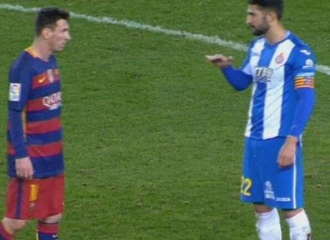 Меси беше обиден от защитника на Еспаньол Алваро Гонсалес. Камерите запечатаха поведението на 183-сантиметровият защитник, който през втората част казва на Лео "Много си нисък", като придружава репликата и с недвусмислен жест. Отговорът на аржентинеца не закъснява. "Ти пък си много слаб".