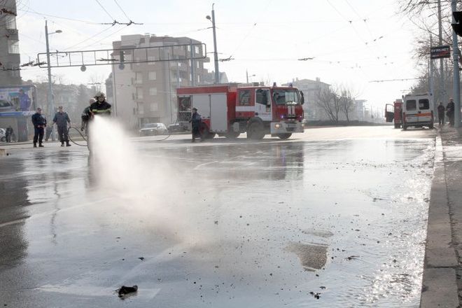Амбулаторната кола пламнала на светафар. Шофьорът усетил и миризма на бензин. Той слязъл и извадил пожарогасител, на помощ му се притекли шофьорите на още пет автомобила.