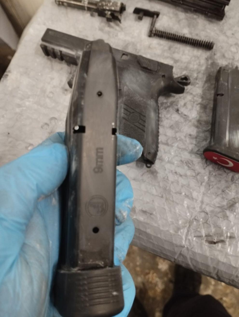 При извършен личен преглед на шофьора, митнически служител открива отзад на кръста на мъжа, прикрепени с колана на панталона, два пакета. В единия от пакетите е открит боен пистолет и два пълнителя за него, а в другия пакет - части на друг разглобен пистолет.