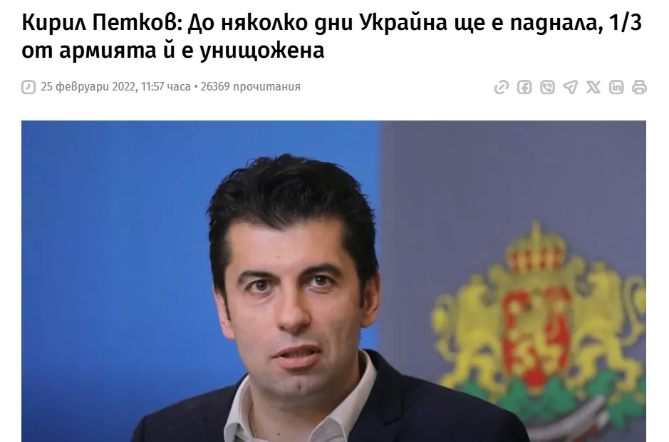 Че Кирил Петков е изтънчен специалист по международни прогнози си пролича още месец по-рано. На 25 януари, когато градусът на напрежение между Русия и Украйна се беше покачил до степен на предвоенно положение, тогавашният премиер свика Съвет по сигурността. Пред медиите тогава той коментира: "Напрежението се вдига, но не дрънчи на война." По-малко месец по-късно Русия нападна Украйна.