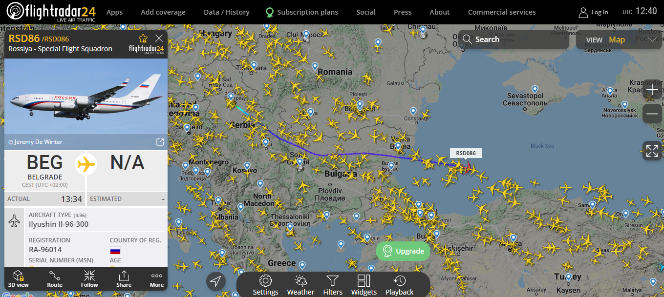 Самолетът с регистрация RA-96014 премина над България и в късния следобед в неделя. Той е излетял от Белград в 13:34 часа, като крайната му точка отново е летището в черноморския курорт Сочи.