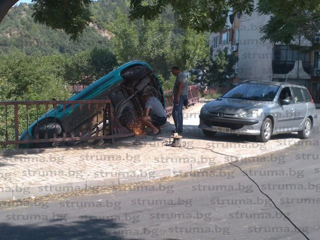 Тежък пътен инцидент на 5-те кьошета при бившата Транспортна болница в Дупница. Жена, управляваща Ситроен, за да избегне удар с друг автомобил, навила волана, ударила се в оградата на болницата и автомобила увиснал във въздуха, съобщава "Струма.бг".