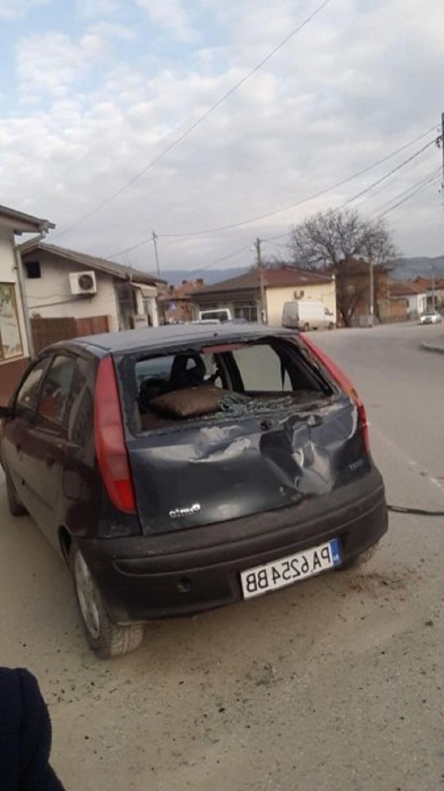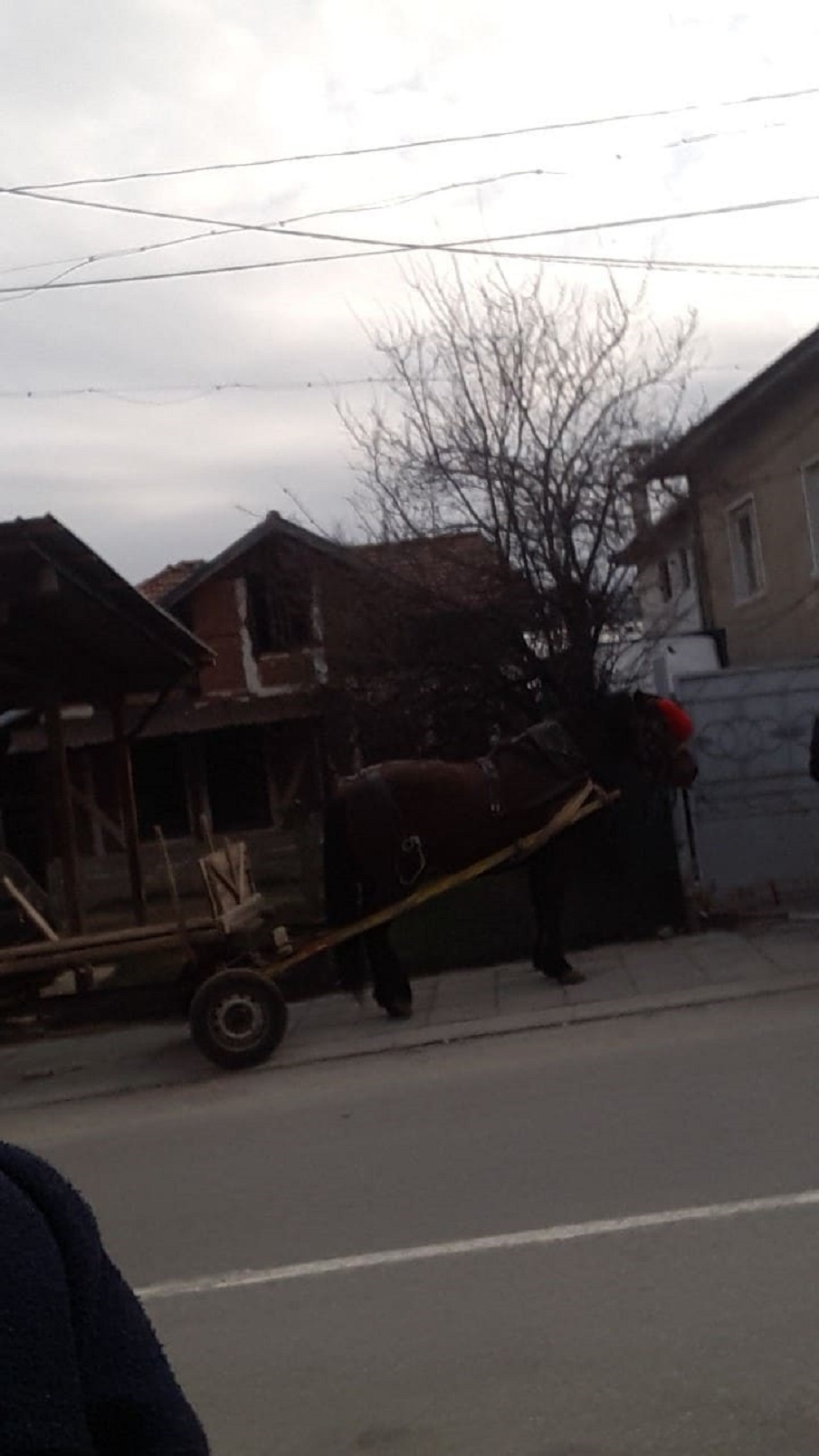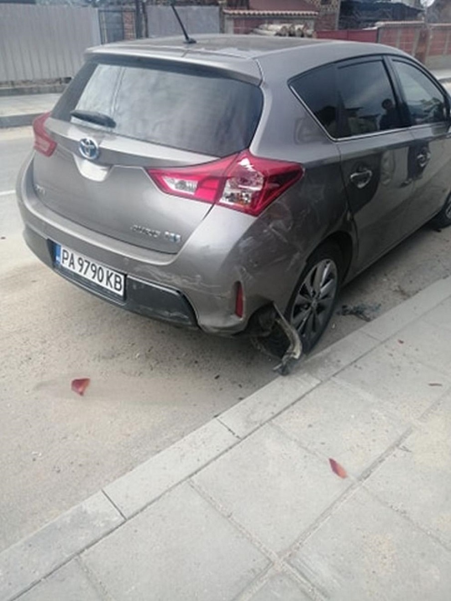 Конят с каруцата се качил на тротоара и нанесъл щети по паркираните автомобили на улицата. В колата, която има най-големи щети, е имало хора. Младо момиче, което е шофирало и баща й.