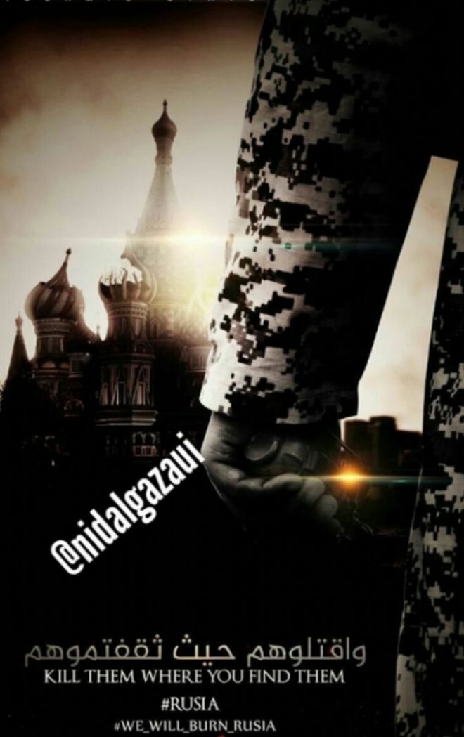 "Ще изгорим Русия" - такакава заплаха отправила "Ислямска държава" дни преди атентата в Санкт Петербург. Предпреждението е написано върху снимка на символния за Москва храм "Василий Блаженни" на Червения площад. "Убийте ги, където ги намерите", пише още на фотоса.