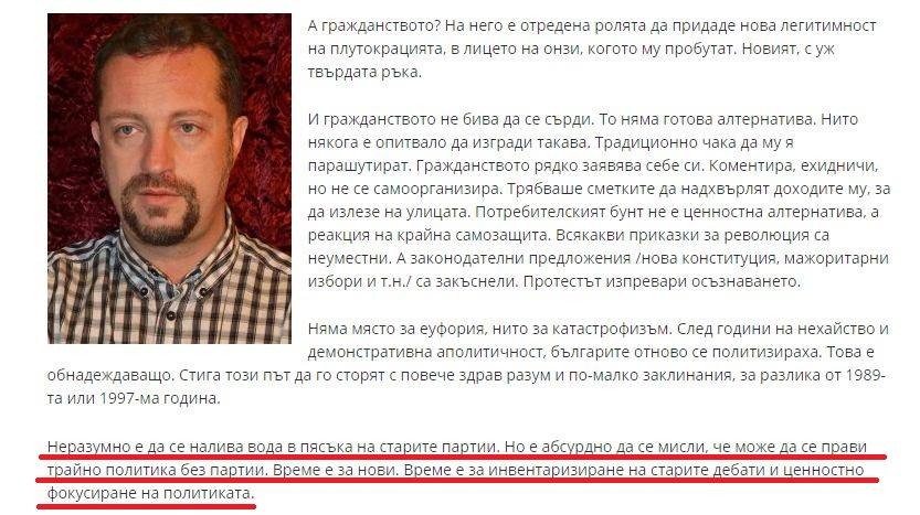 "Не разбирам защо Иво и Галя обвиняват Ваня, че се опитва да създаде отдолу една алтернатива на старите партии, след като точно това години наред беше тяхната собствена теза? И в мига, в който екипът ни реши да постави едно ново начало, започнаха да я заливат с кал точно затова, че тя продължава да вярва в тази идея!
