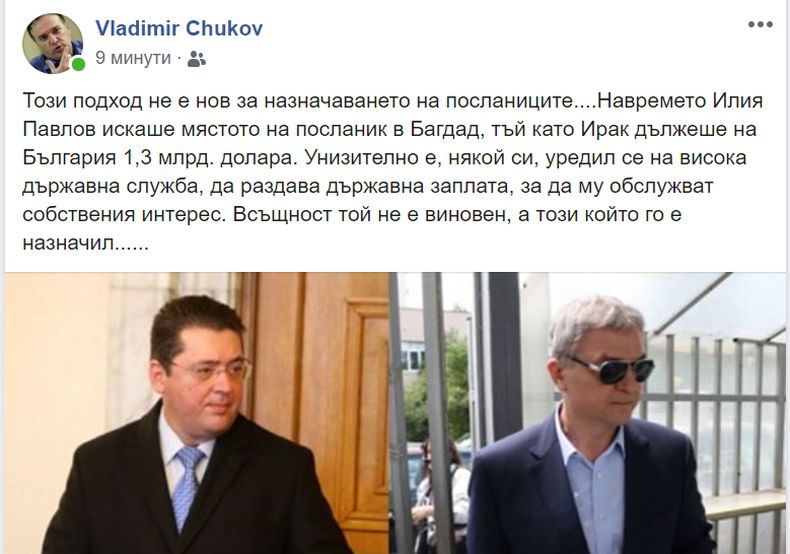 Този подход не е нов за назначаването на посланиците....Навремето Илия Павлов искаше мястото на посланик в Багдад, тъй като Ирак дължеше на България 1,3 млрд. долара.