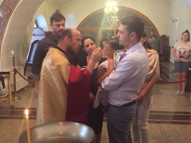 Кандидатът за кмет на София Мария Календерска и евродепутът Николай Бареков кръстиха своя син (снимки)