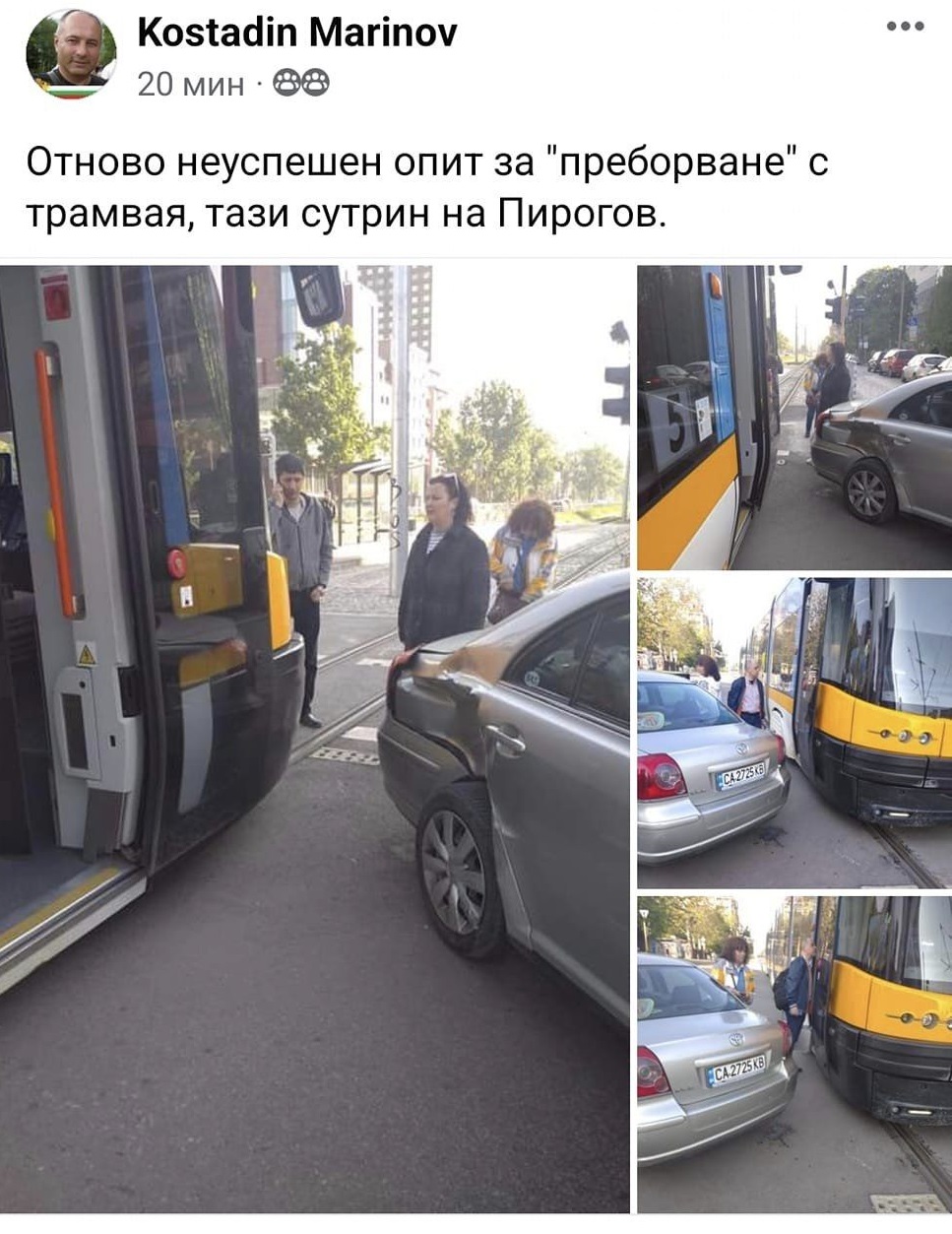 Катастрофа между трамвай № 5 и автомобил в столицата. Това научаваме от социалните мрежи.