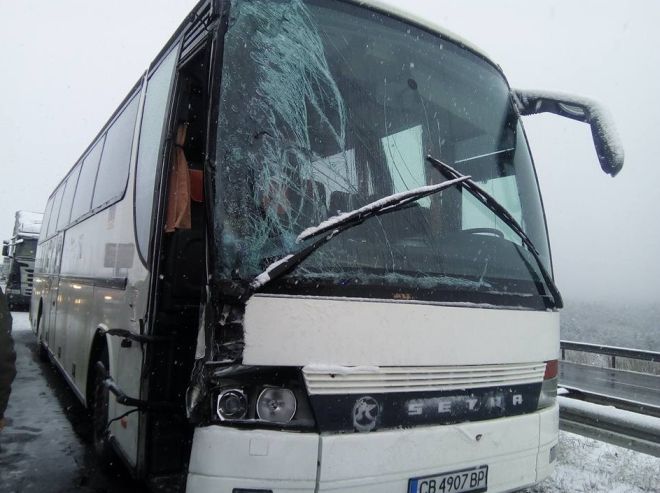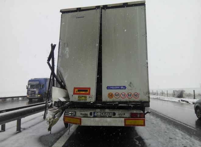 По-късно, заради снега, пътнически автобус се блъсна в друг тир отново на „Хемус”, като пътниците бяха извозени с друго превозно средство.