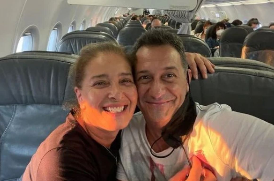 На кадъра палавата актриса е в самолета за Бургас в компанията на... Камен Воденичаров. "Старо, ама лачено", гласят шеговито коментарите под фотоса.