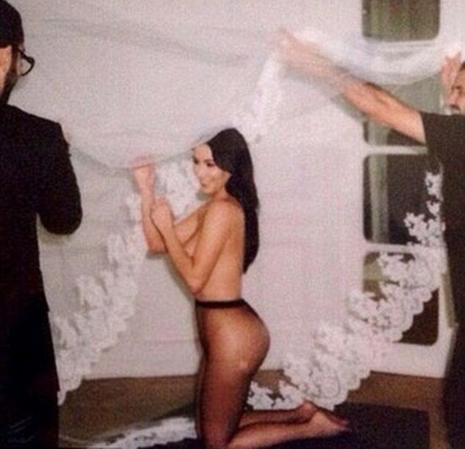 Рикардо Тиски е дизайнерът, който създаде булченската рокля на Ким, с която тя мина пов венчилото с Кание Уест. 33-годишната Ким показа, че не е и скрънза, като публикува пикантни фотоси в мрежата. "Обичам те многоооо!!! Чакам с нетърпение да празнуваме довечера!!!", гласи коментар под фотос.