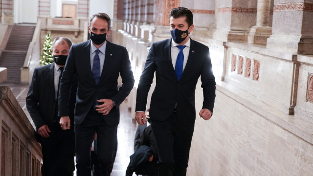 Премиерът Кирил Петков посрещна гръцкия си колега Кириакос Мицотакис. Това е първата среща между двамата. Премиери разговаряха на четири очи.