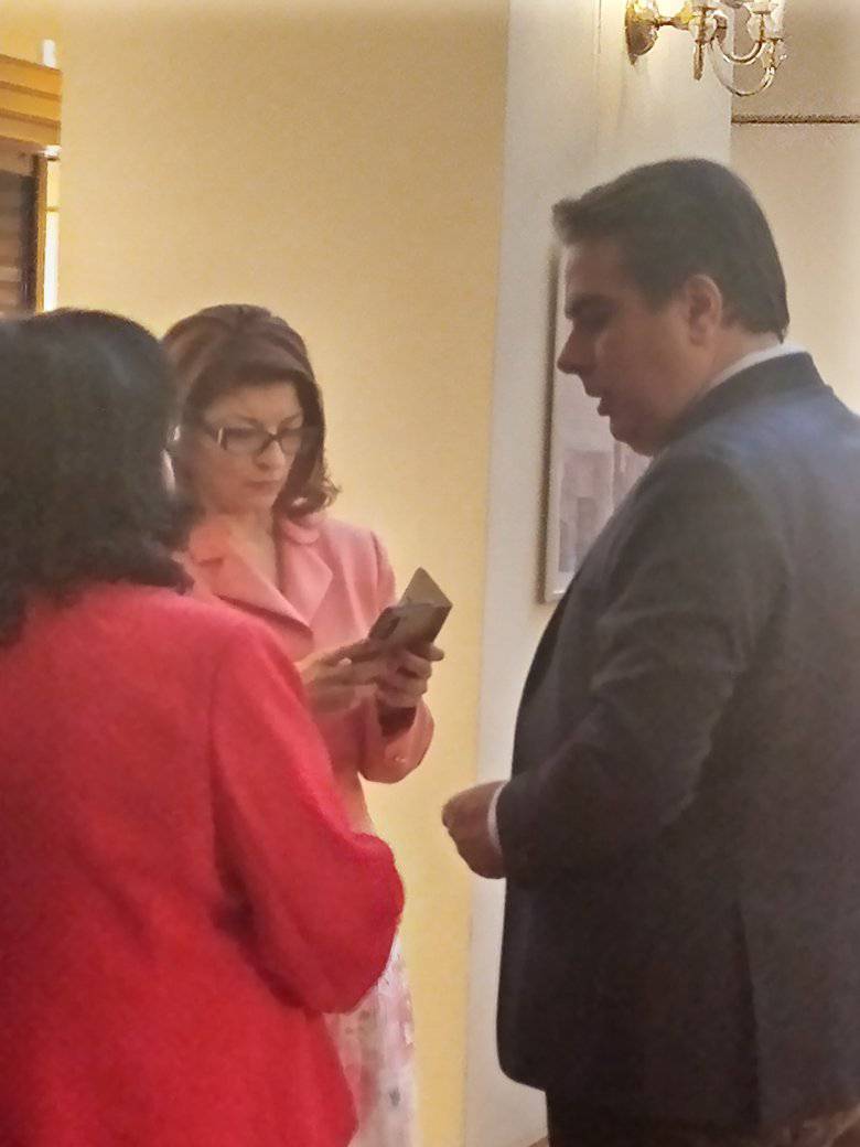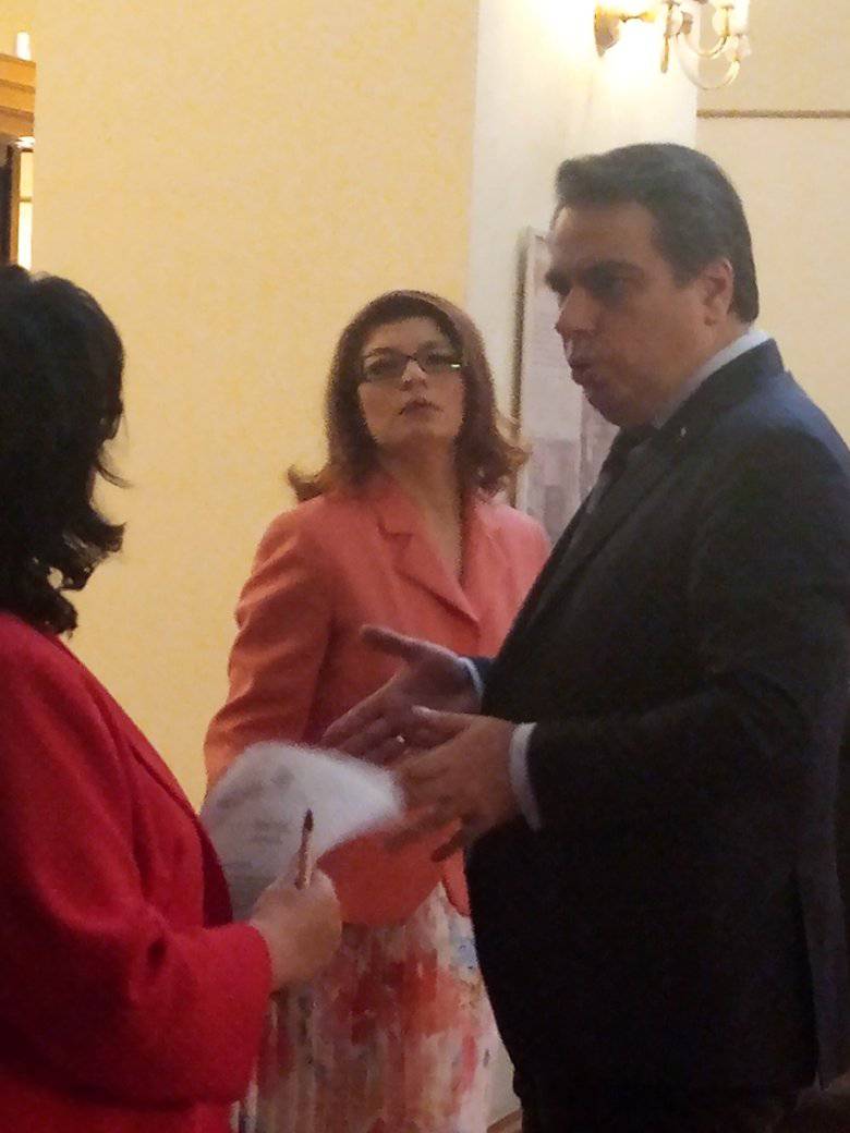 Малко след това при него дойдоха председателят на парламентарната група на ГЕРБ Десислава Атанасова и депутатката от партията Теменужка Петкова.