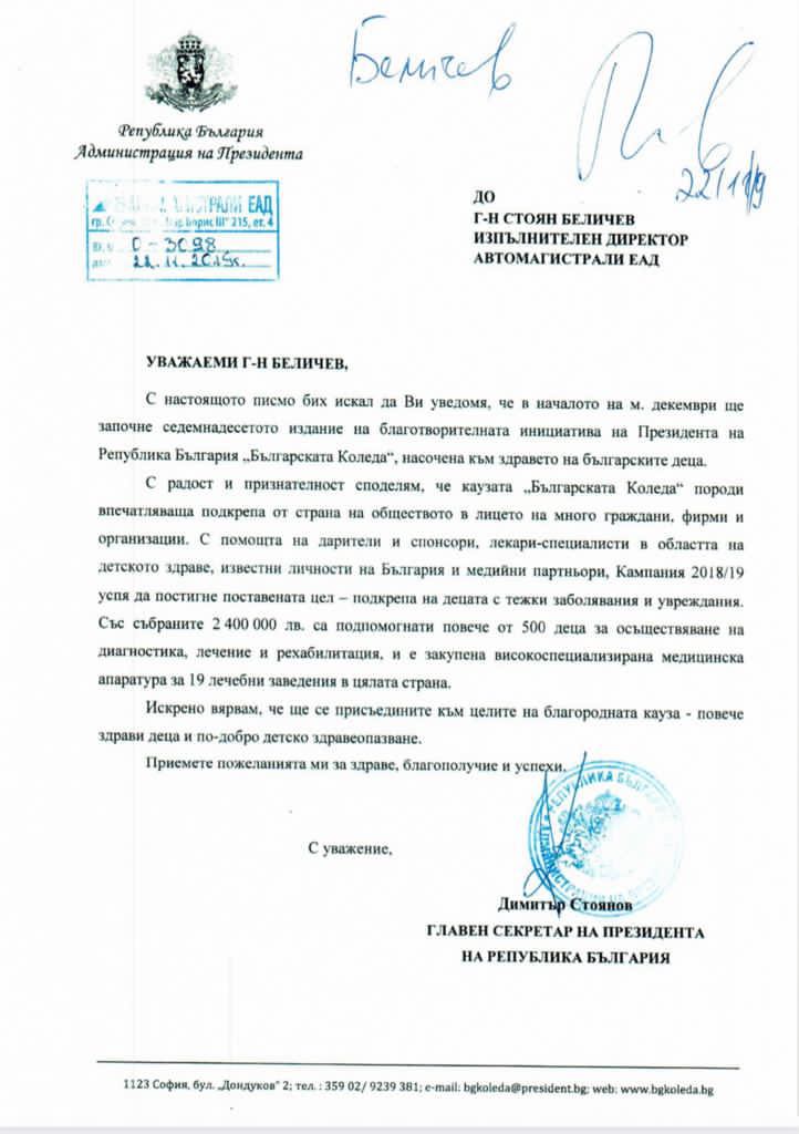 С голяма охота Румен Радев е дал грамота на държавното дружество "Автомагистрали" за големия им принос и дарителство за децата в кампанията "Българската коледа", видя ПИК. Същото дружество, което според Радев не върши никаква работа и не изкарва нищо. Същото това дружество, което според обитателя на "Дондуков" 2 не носи никаква добавена стойност.