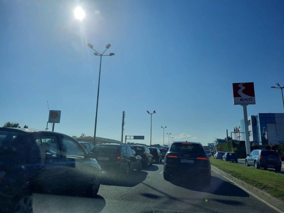 Движението е затруднено. Образувала се е колона от автомобили, предава "Дарик".