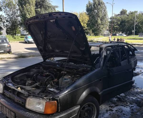 Дошлите на място пожарникари изгасиха огъня, но щетата бе пълна и колата със сигурност отива на вторични суровини. Причината за пожара е късо съединение.