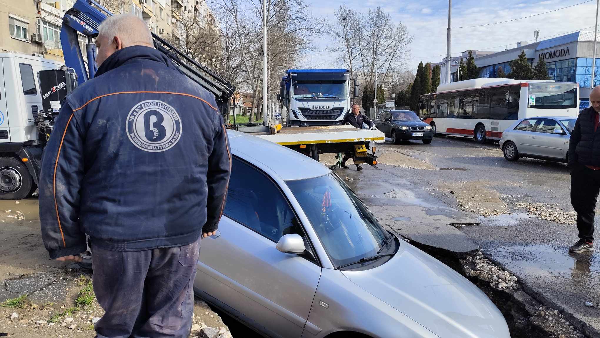 Кола пропадна в дупка, образувана от ВиК авария в пловдивския квартал "Столипиново". При инцидента на ул. "Ландос" няма пострадали.