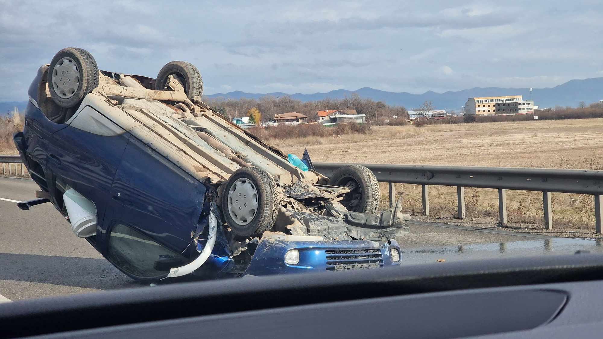 Кола се преобърна по таван на Околовръстното в София (СНИМКА)