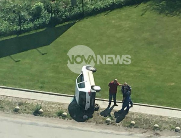 Автомобил се преобърна на столичния булевард "Христофор Колумб". Причината за инцидента е засичане от друг автомобил.