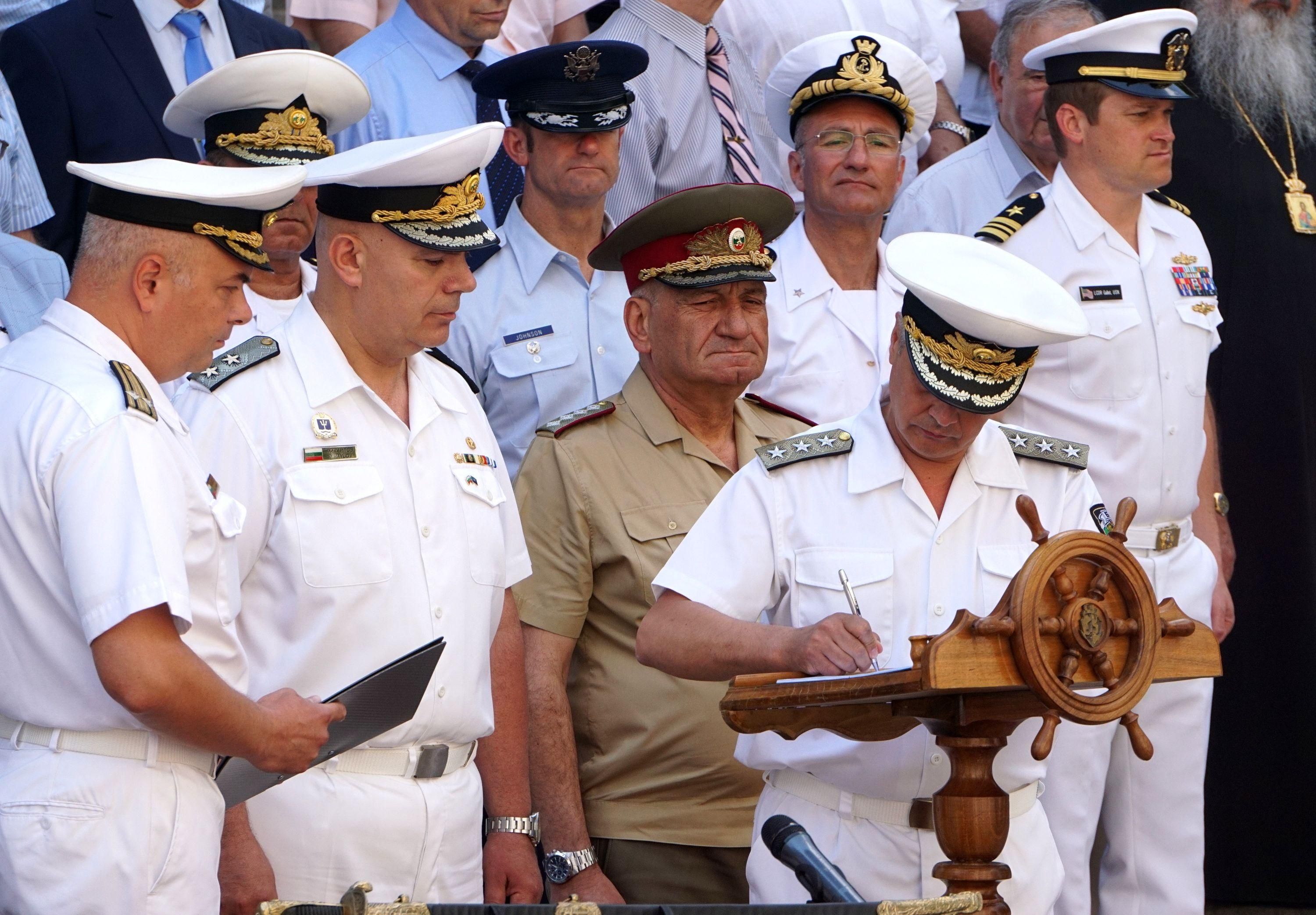 С тържествен военен ритуал днес във Варна бе предаден командирският пост на Военноморските сили от вицеадмирал Митко Петев на контраадмирал Кирил Михайлов. Церемонията, която се проведе за пръв път и включваше предаване на знамето и на командирската сабя, бе уважена от представители на държавната и местната власт, на академичната общност, общественици, офицери от резерва и запаса.