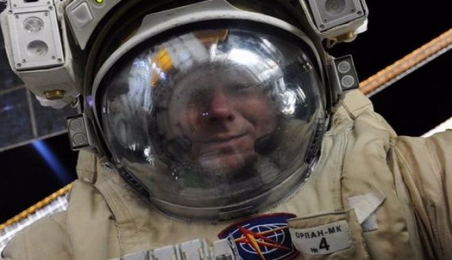 "Космоселфи от Генадий Падалка, което той направи по време на десетото си излизане в открития космос на 10 август", уточняват от руската космическа агенция в Twitter.