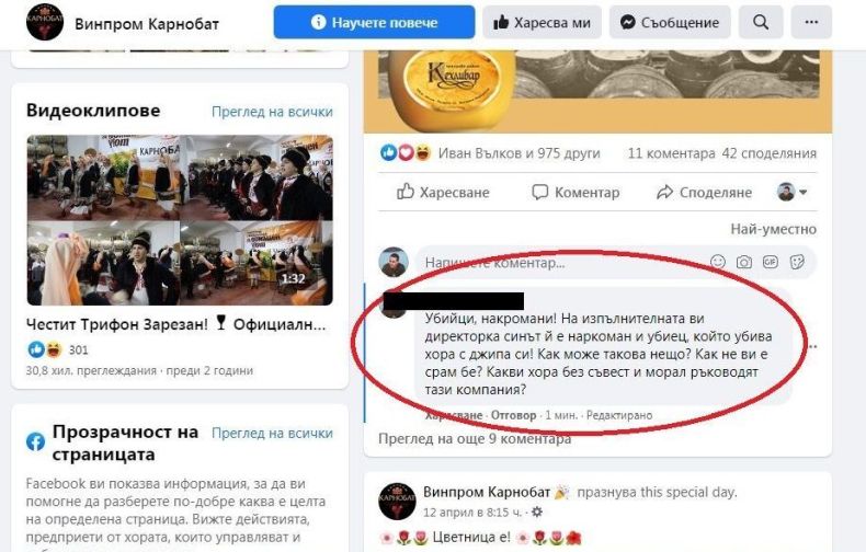 Общественият отзвук от нелепата смърт на Милен Цветков отприщи гнева на българите и след призиви из социалните мрежи да бъде бойкотиран бизнеса на карнобатския винпром, много хора използваха страницата на предприятието, за да дамгосат директорката му и нейния галеник.