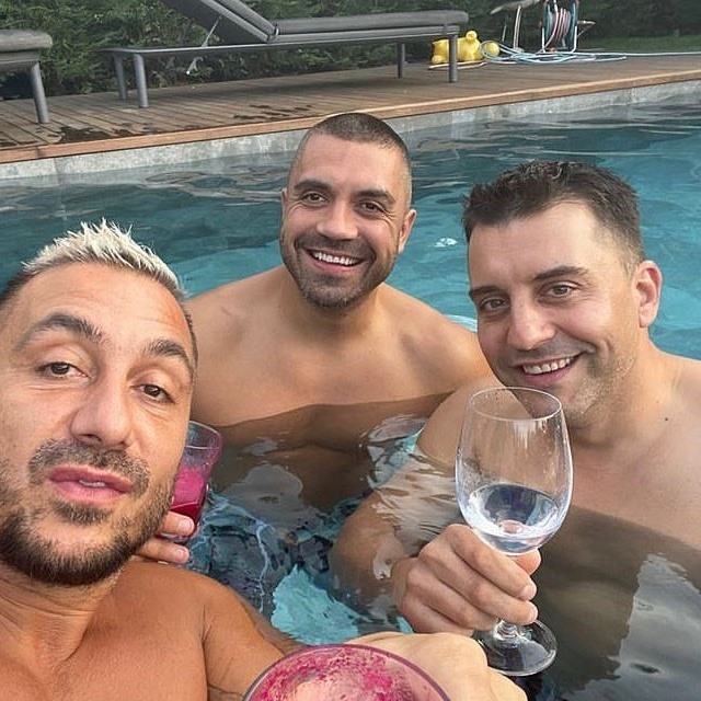 Изпълнителят вдигна наздравица директно от басейна в компанията на известния си колега Борис Дали и брат му.