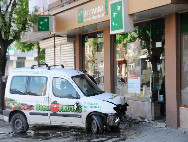 Лек автомобил "Ситроен" се заби като торпедо във витрината на офис на фирма за кредитиране, предаде Булфото.