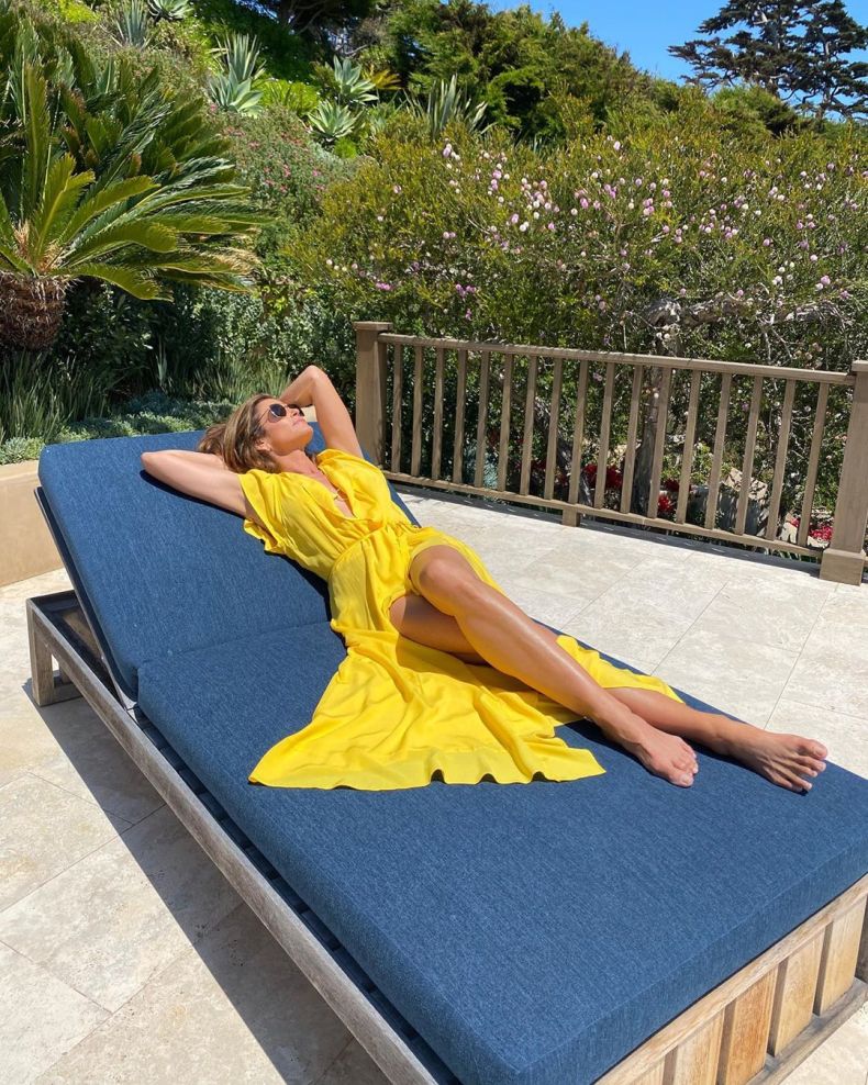 На кадъра 54-годишна знаменитост се е излегнала върху шезлонг в лятна жълта лятна и слънчеви очила. Това, което привлича погледите обаче не е ярката дреха, а краката на Синди, снимани от по-нисък ъгъл.