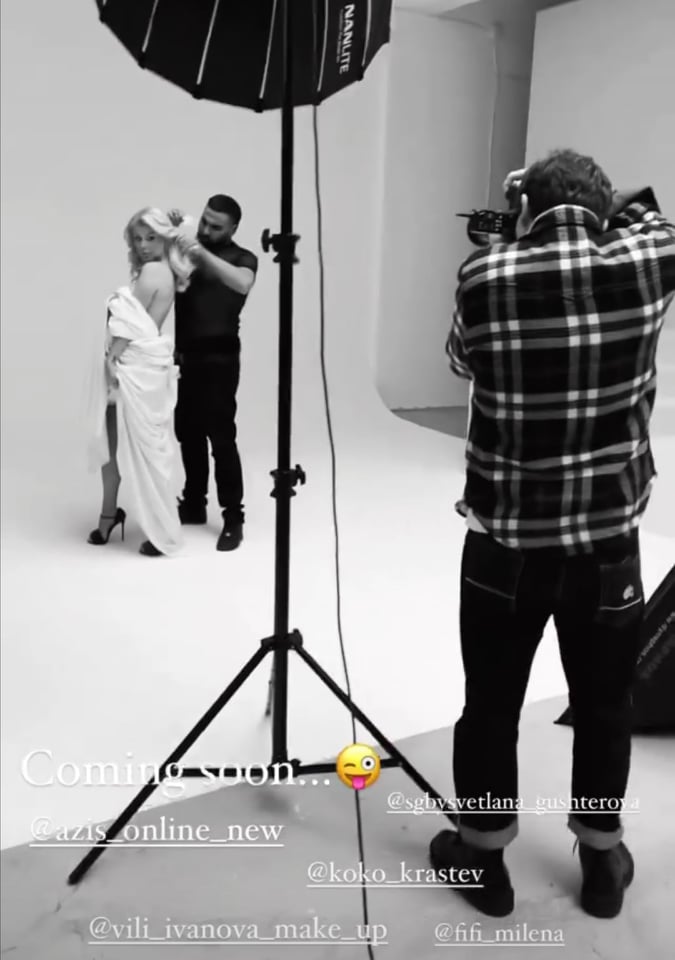 Бекстейдж кадри от нея се появиха в Инстаграм. От таговете стана ясно, че действието се развива в студиото на топфотографа Костадин Кръстев-Коко.