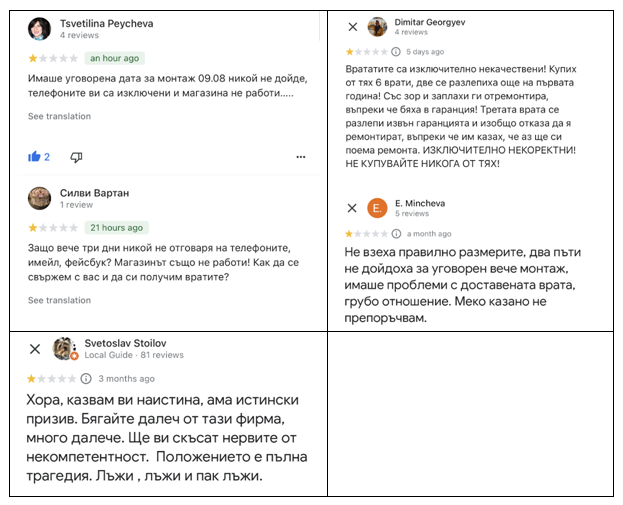 Хора продължават да се оплакват, че има забавени поръчки с по 6 месеца и няма кой да ги изработи. Както е написано в истинските коментари - клиенти, които са дали по над 10 000 лева за мебели, получавали пълни боклуци, след което им се изплаща 300 лева неустойка и обекта се приключва. Това е усещането на основателя на компанията за индивидуален подход и хармония, стил и уют Мая Calma.