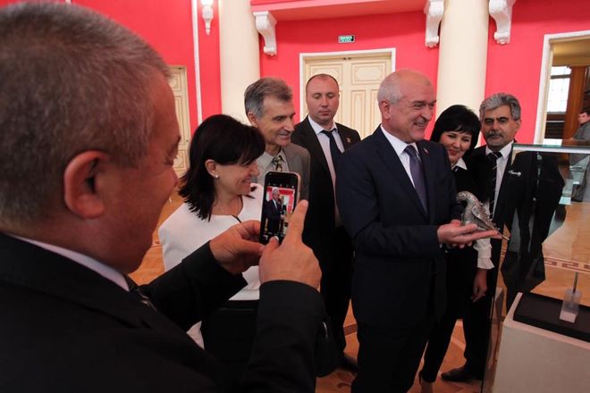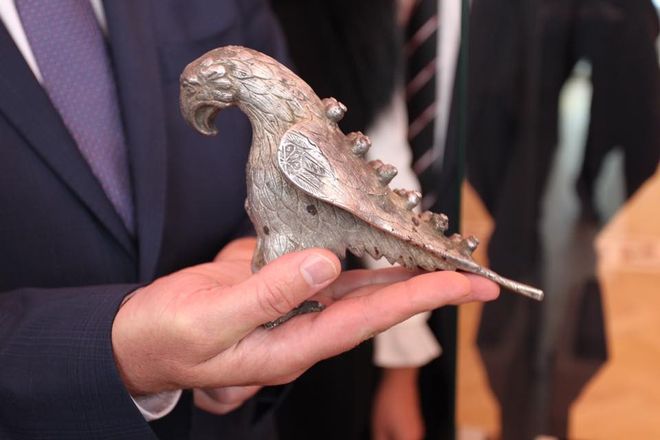 "Вълнуващо беше посещението ни в Запорожкия етнографски музей, където видяхме оригинала на орела на хан Аспарух. Заедно с колегите от парламентарната делегация, която беше на двудневно посещение в Украйна, успяхме да се докоснем до този безценен за всички българи символ, който е и герб на първата българска държава", написа в социалната мрежа Главчев.