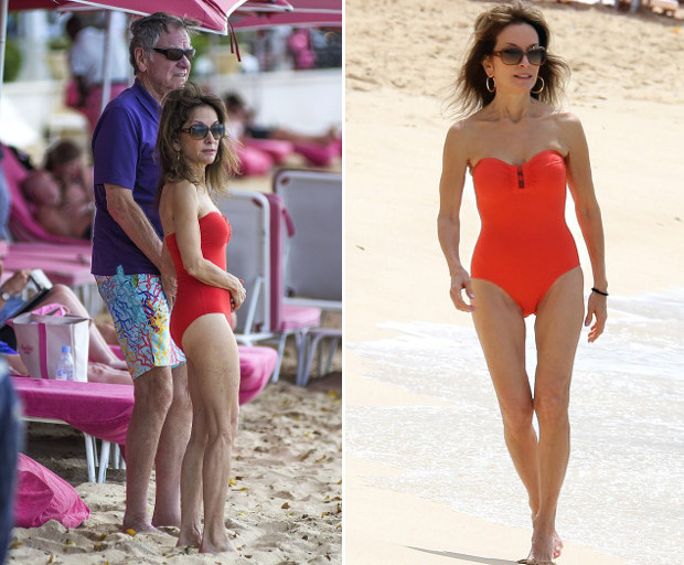 Лучи бе снимана преди броени дни от папараци, докато се разхождаше по плажа в Барбадос със съпруга си. Облечена в цял червен бански, звездната дама излъчваше изящество и финес и демонстрира визия, която ни е трудно да повярваме, че на жена на 71 години.
