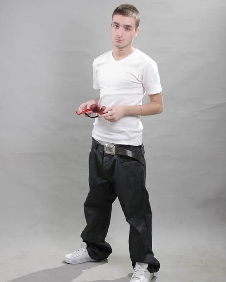 Хитмейкърът от Габрово, чието име е Кристиан Талев, пусна в Инстаграм своя стара снимка, на която позира с широки дънки.