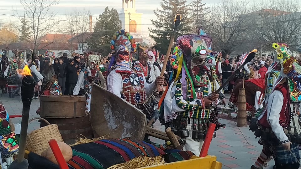 По стар обичай бяха изиграни сцени от сватба и жътва, а за финал маскираните мъже прескачаха запаления по-рано огън на площада. Сред тях имаше и малки деца.