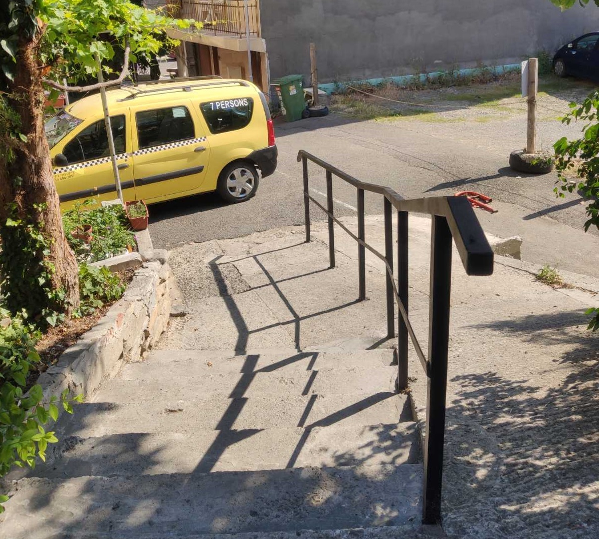 От доста време живущите в района искали да се постави парапет и да се обезопасят стълбите и когато това било сторено, те не могли да се израдват и няколко дни на новата придобивка. Буквално часове, след като майсторите, пратени от Общината приключили с монтажа, съседите видели един от бакшишите – мъж на име Георги, да вади флекса и да реже частта от парапета, която му пречи да спира на харесаното от него място.