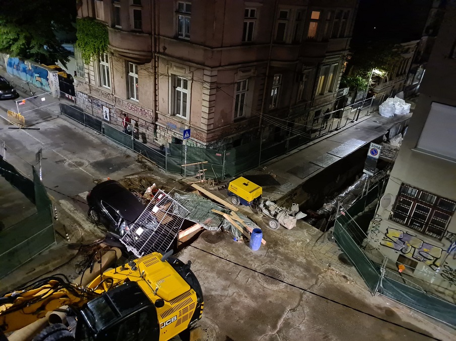 Куриозният инцидент се е случил по тъмно в сряда вечерта, в участъка на кръстовището с "Гурко", съобщава „Монитор“. Вероятно по невнимание водачът е пропаднал в огромната яма с возилото си, след като се е промушил покрай ограничителните табели за навлизане в района.
