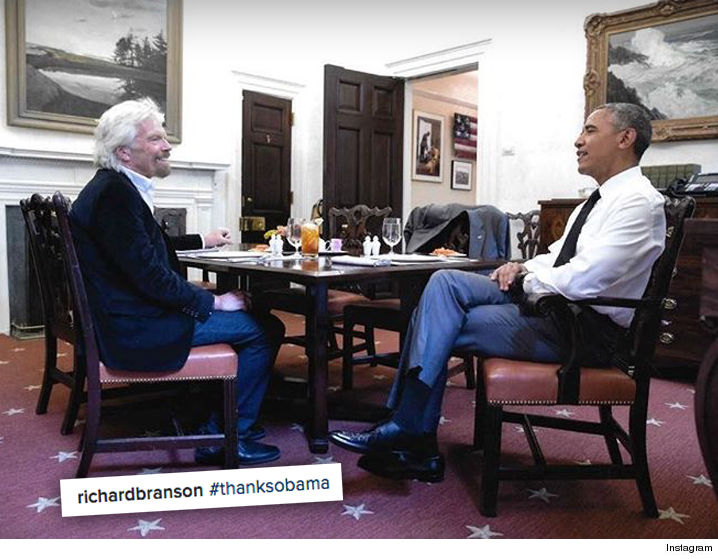 Само преди дни Брансън публикува в социалната мрежа общ фотос с приятеля си Обама, в който му изказва своите благодарности.