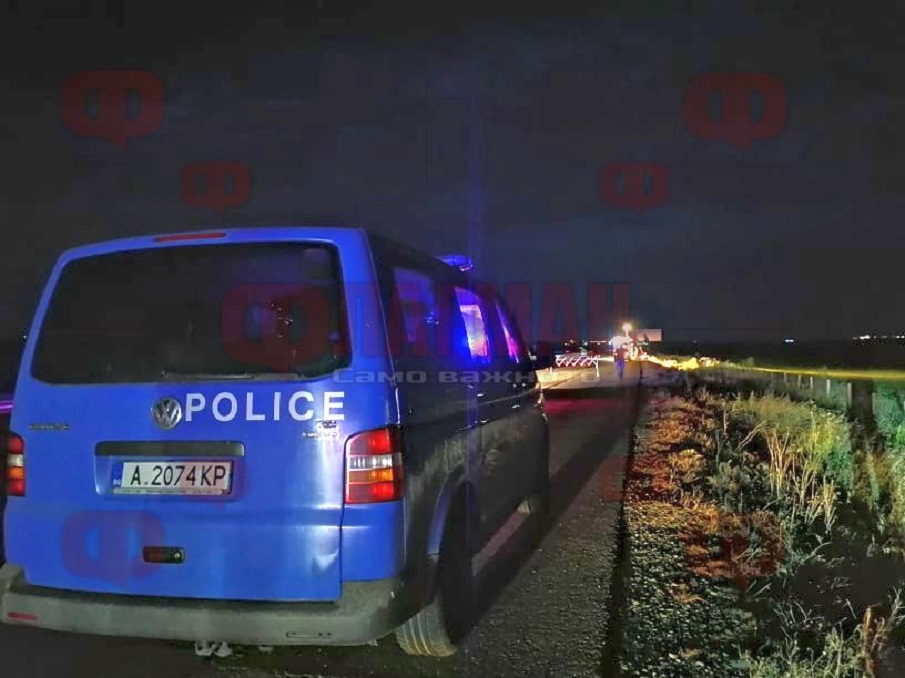 Движението към Бургас е пуснато в една лента и няма задръстване при навлизането към областния град. Продължава огледът, пристигна и автомобил на криминалистичната лаборатория.